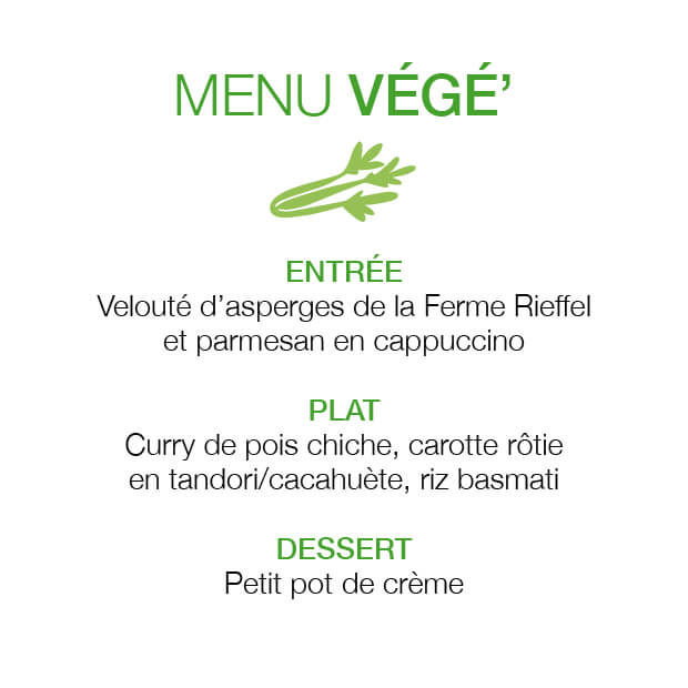 Vous pouvez panacher votre menu en piochant dans chacun des menus proposés :